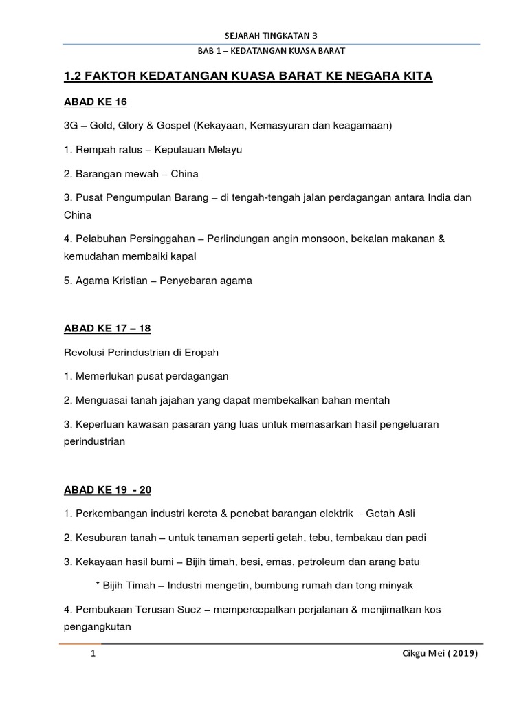 Bab 1 Faktor Kedatangan Kuasa Barat Ke Negara Kita Pdf